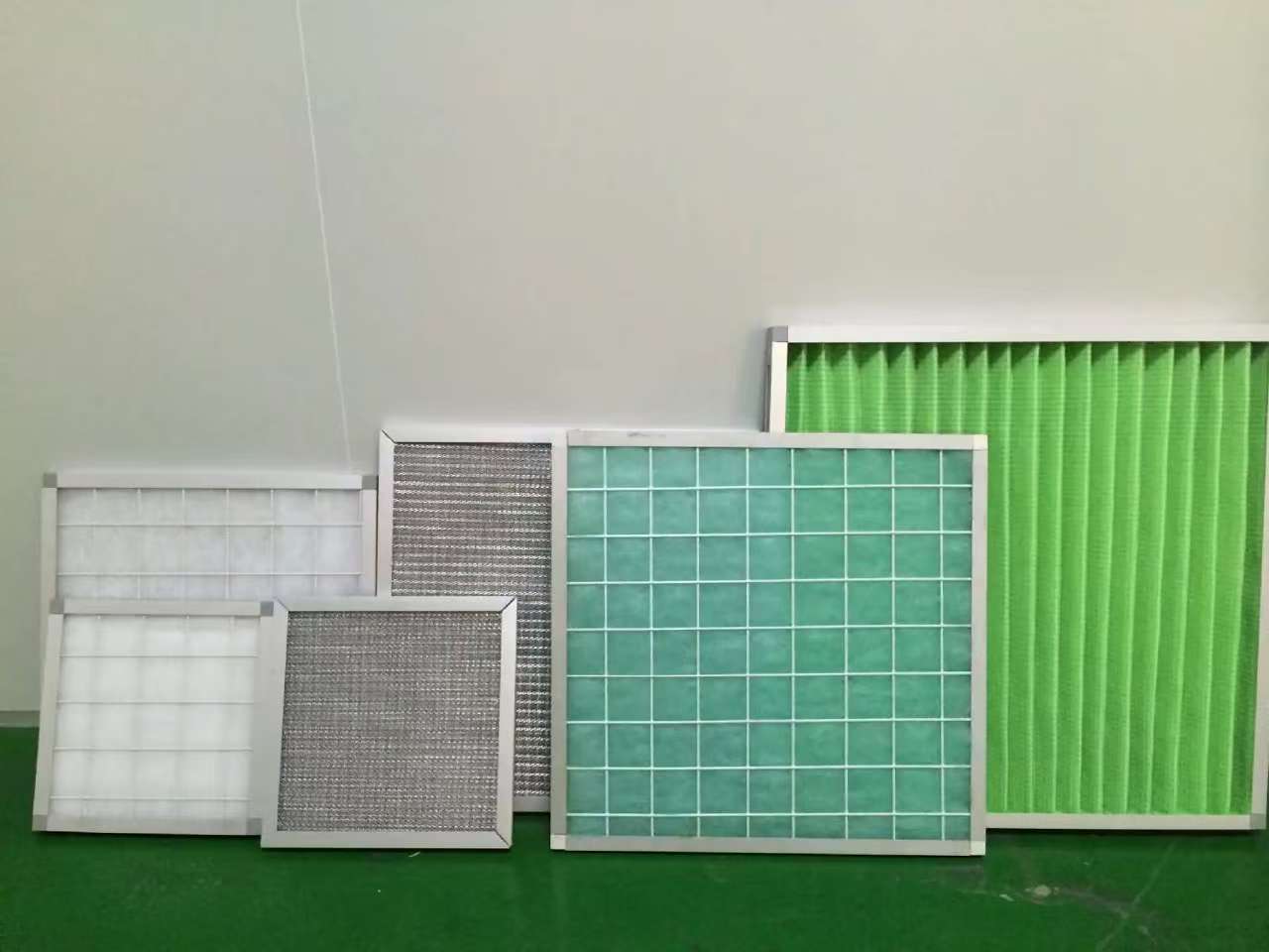 วัสดุกรองสีเขียวและสีขาว: ด้านสีเขียวแสดงพื้นผิวรับอากาศ ขณะที่ด้านขาวมองออกไป